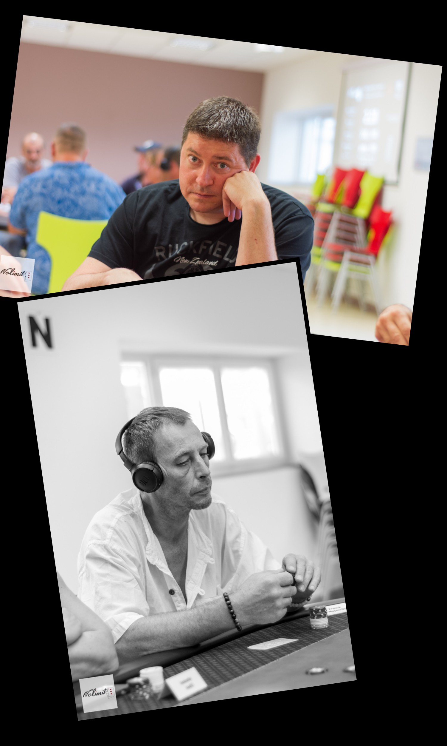 Le premier temps se déroule avec la fatigue accumulée sur la journée : KKillerstars relance 50k au bouton, Bricole en BB déclare « je suis désolé je vais te mettre une horreur » tout en poussant son stack et retournant 4 et 5 off (pensant que Sy-Mond est déjà à tapis). La suite du coup va se dérouler carte ouverte et KKillerstars avec AT va bien sûr payer. Mais Bricole tient sa promesse et met une horreur en faisant quinte