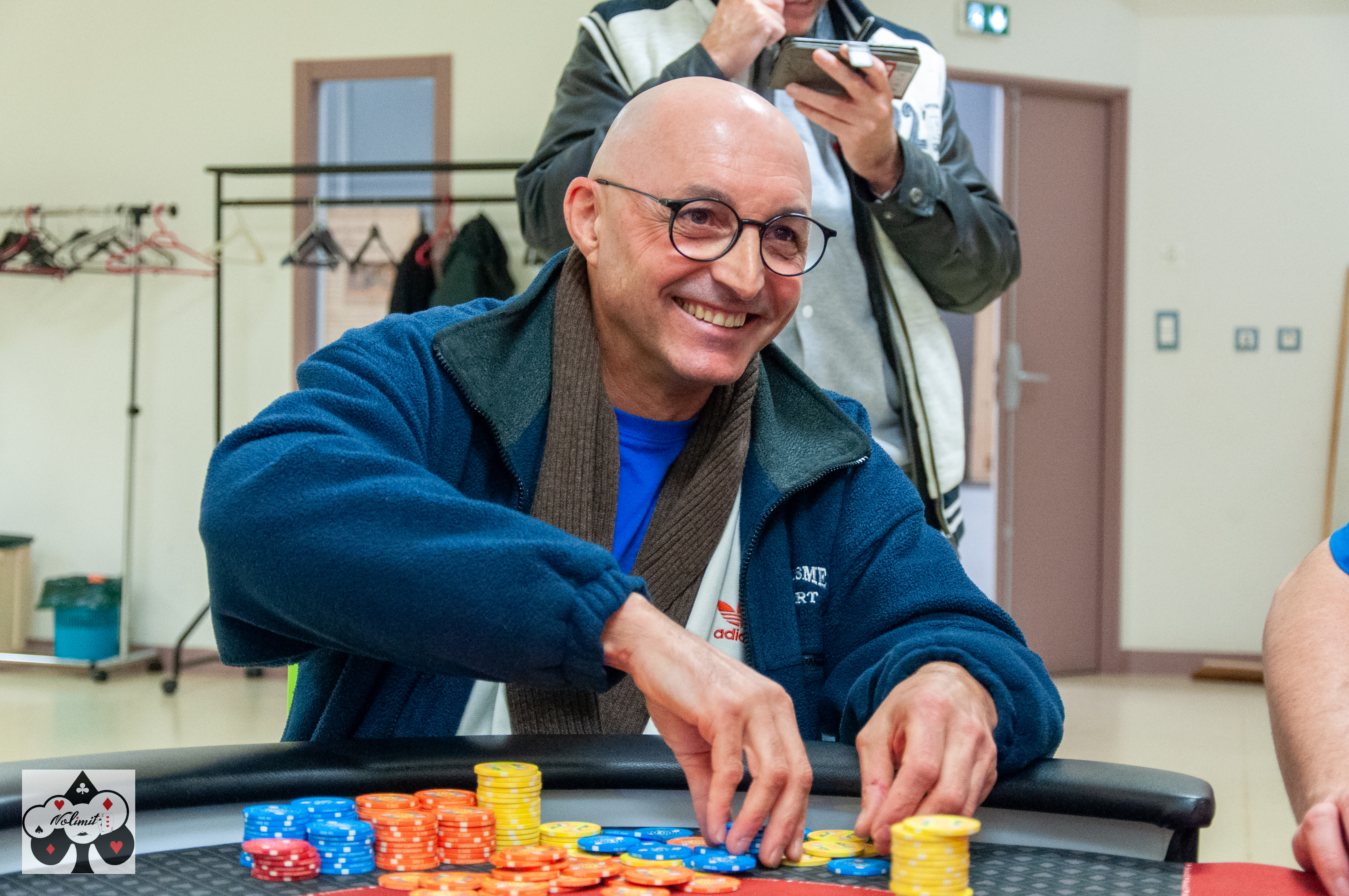 Bruno va enchainer plusieurs all-in non payés, mais sur un flop semblant anodin 2-3-7 Bruno avec Q7 va faire une nouvelle fois tapis, Roland avec son A7 va s’enfoncer dans la brèche et remporter ainsi le tournoi - VGG à lui