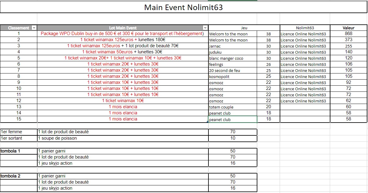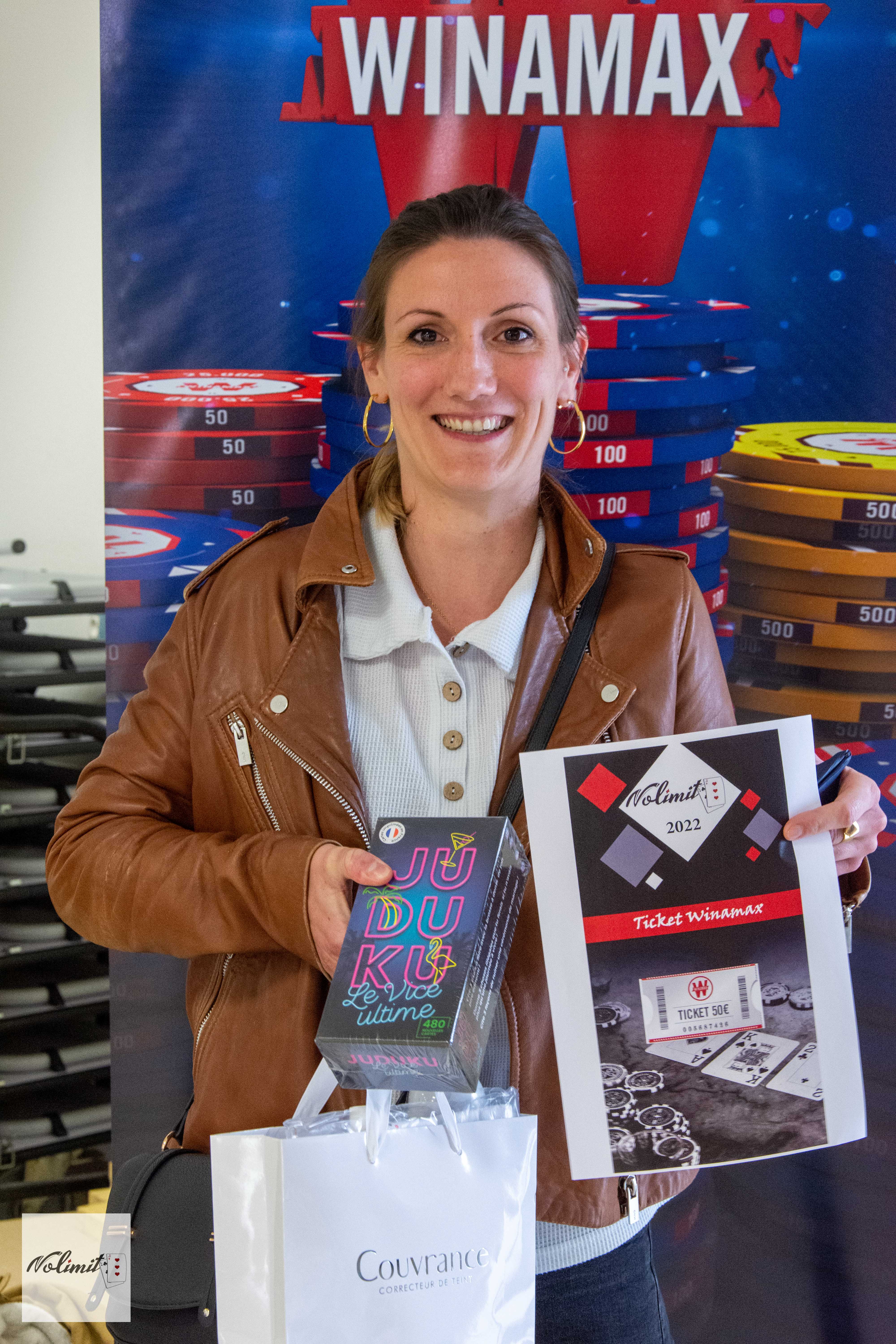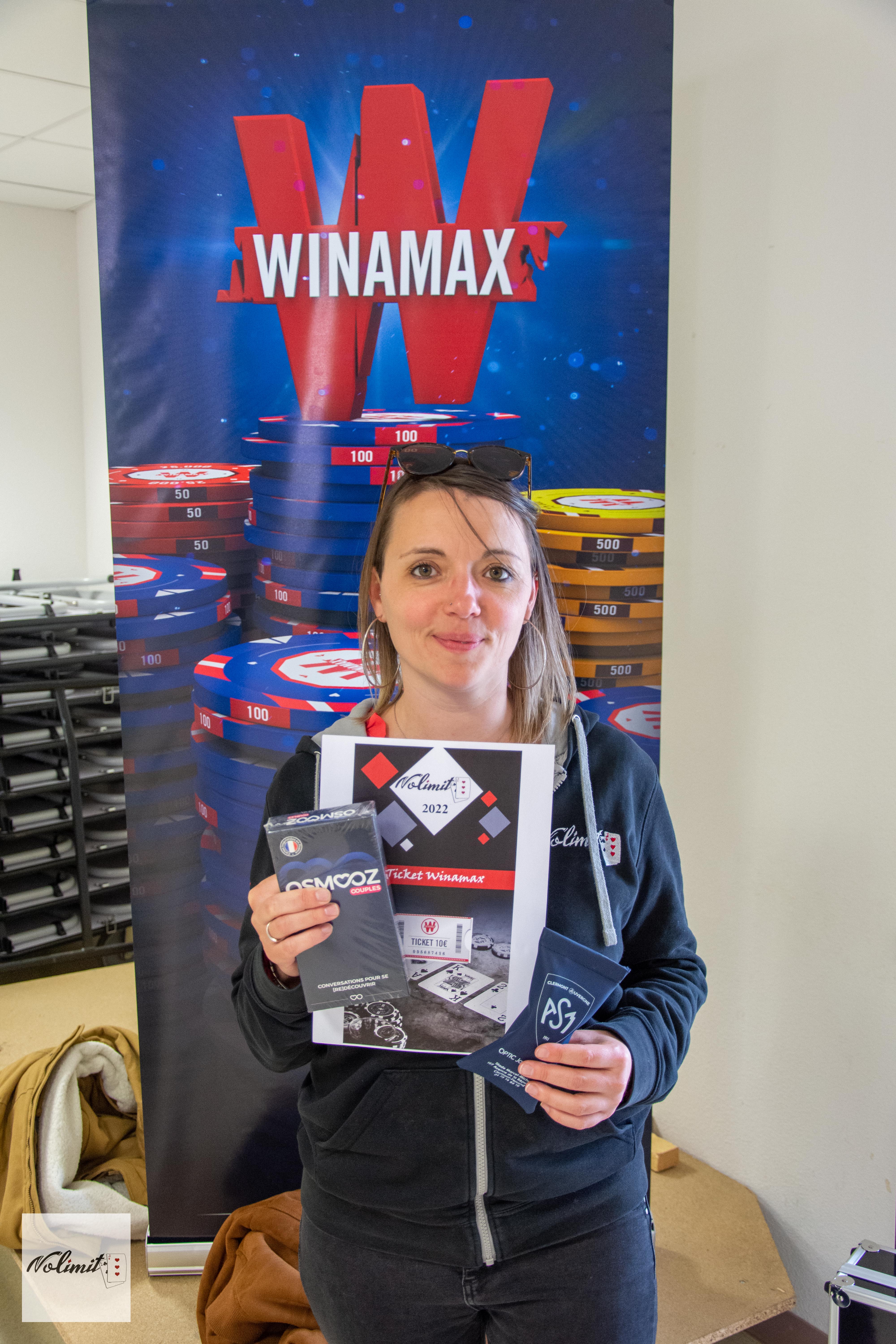 4éme + meilleure féminine - Elolilouche : ticket winamax à 50 € + licence online Nolimit63 + 1 lot de produits de beauté + lunette 30€ + jeu juduku