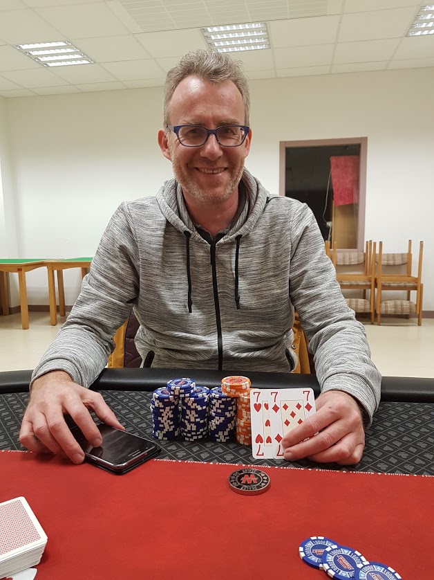 Au BU (croupier) je déroule alors un board en mode "no stress" (notamment après le flop) : /8D /5S /4H /TS /2S