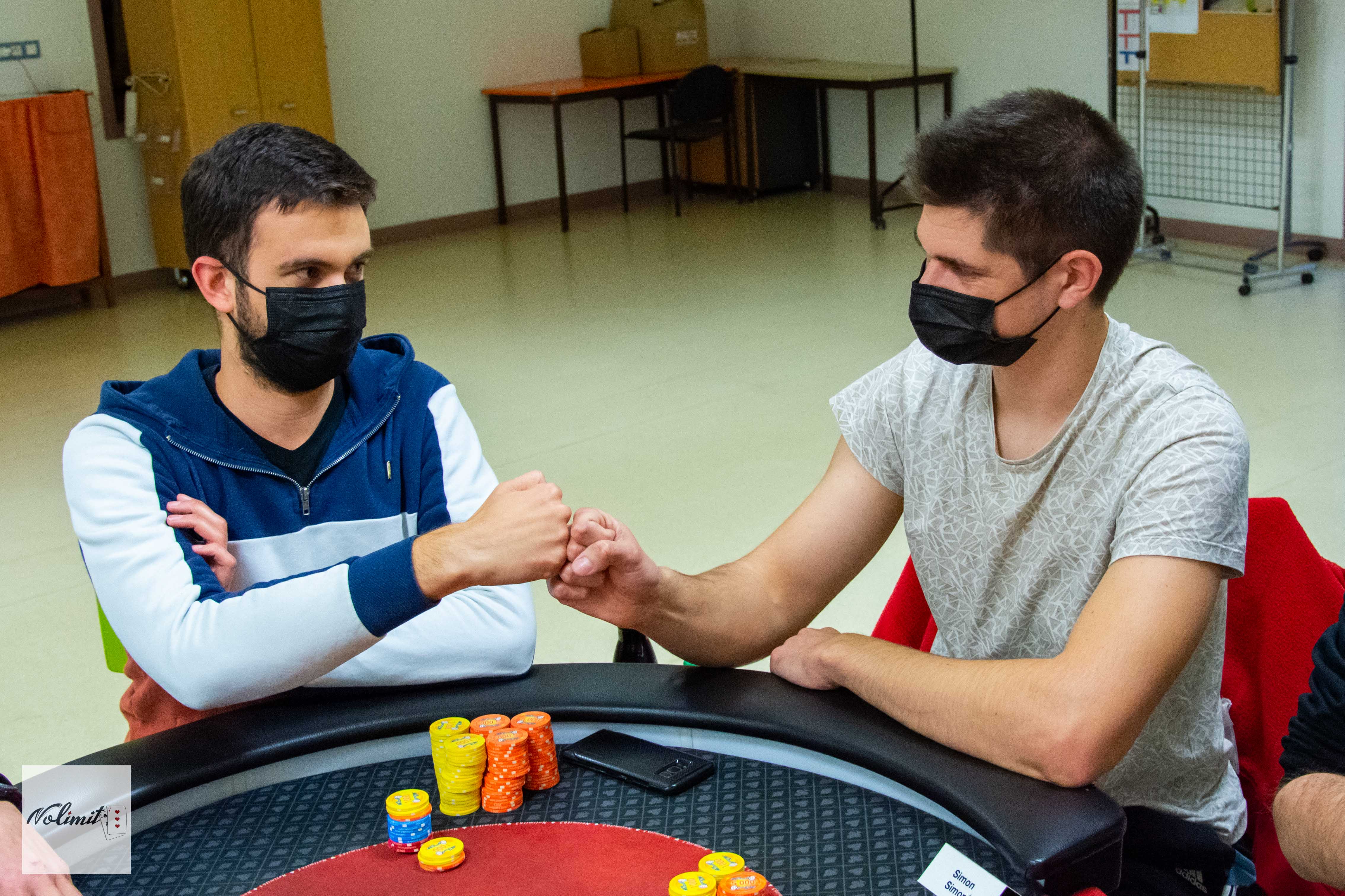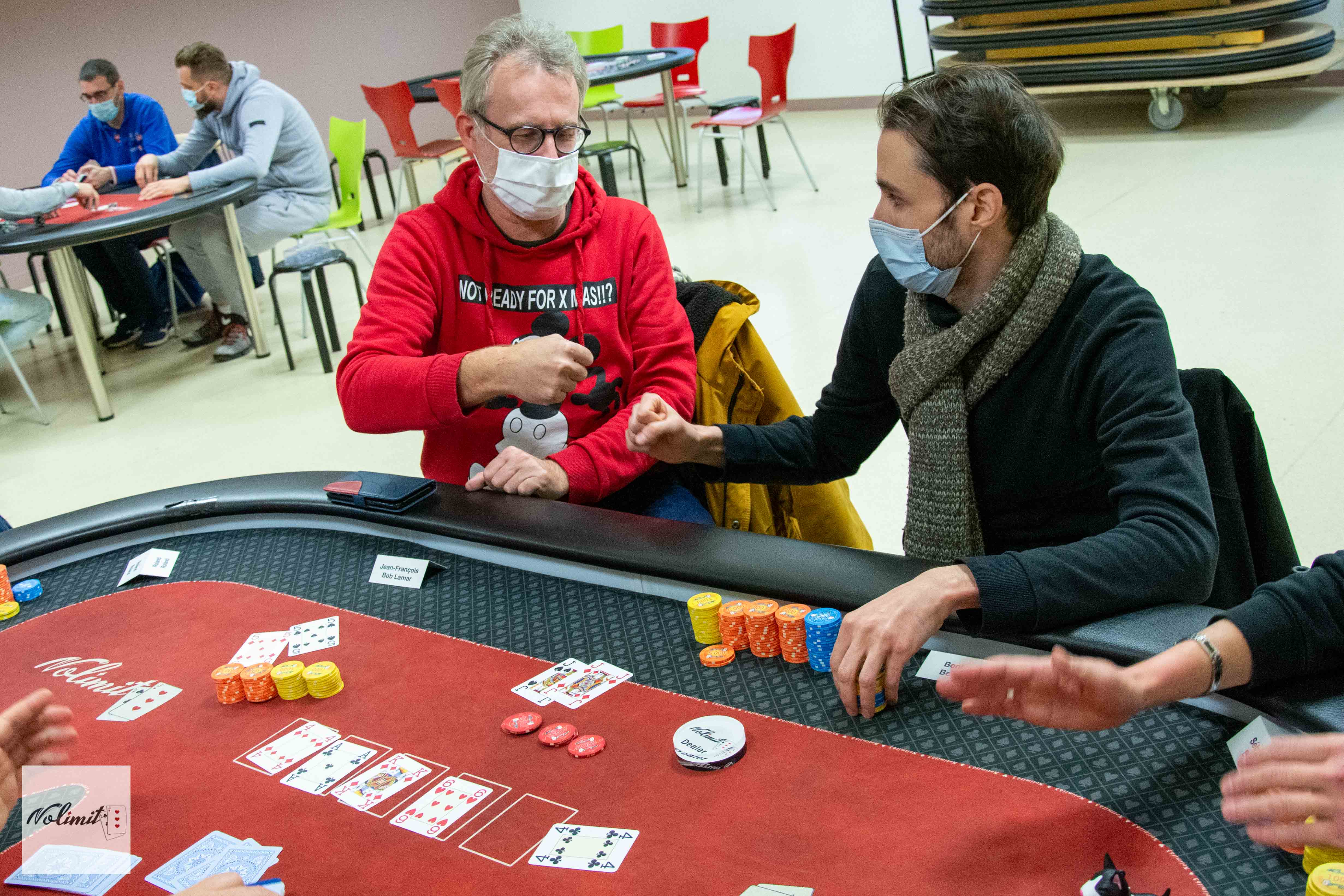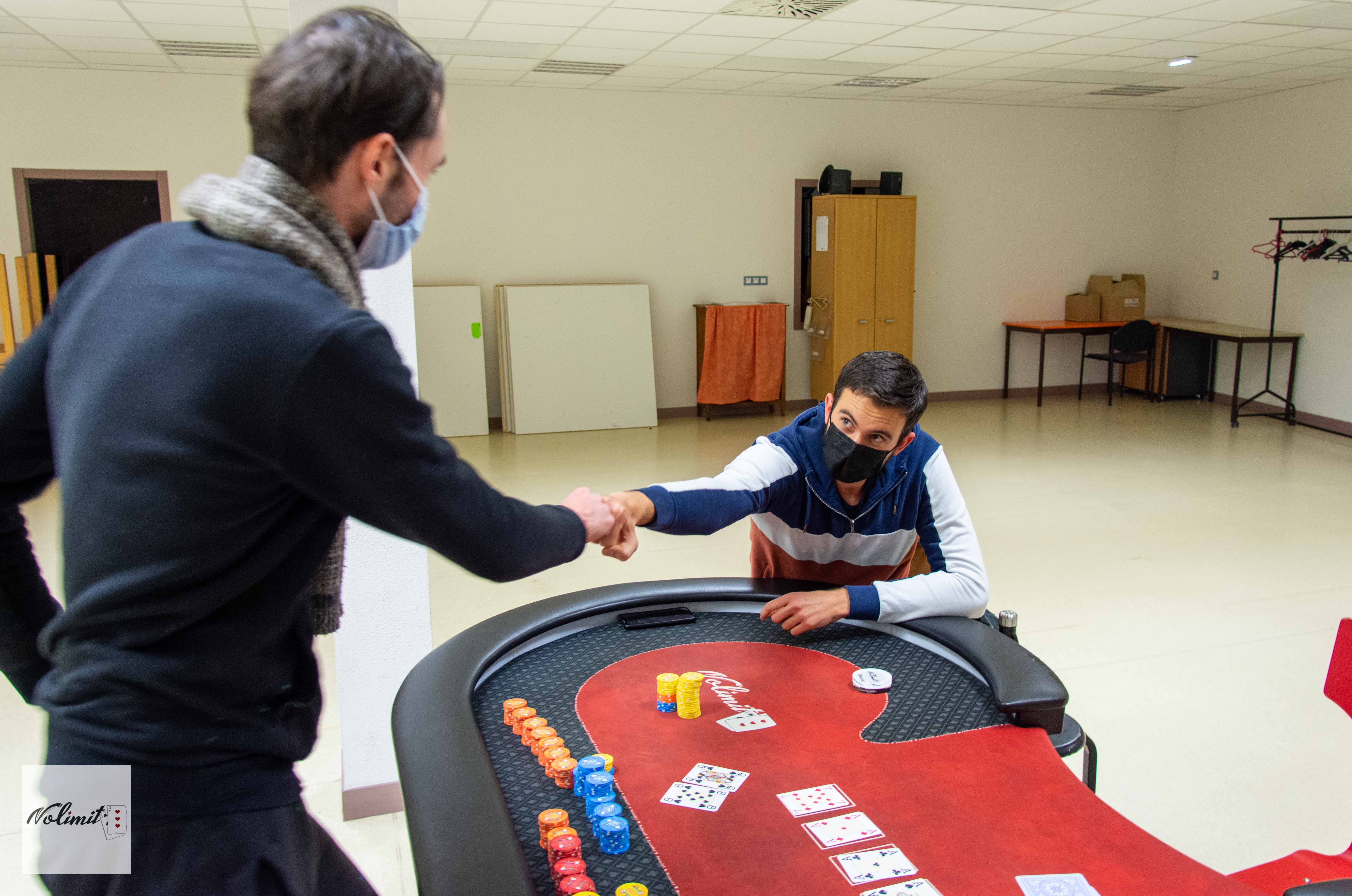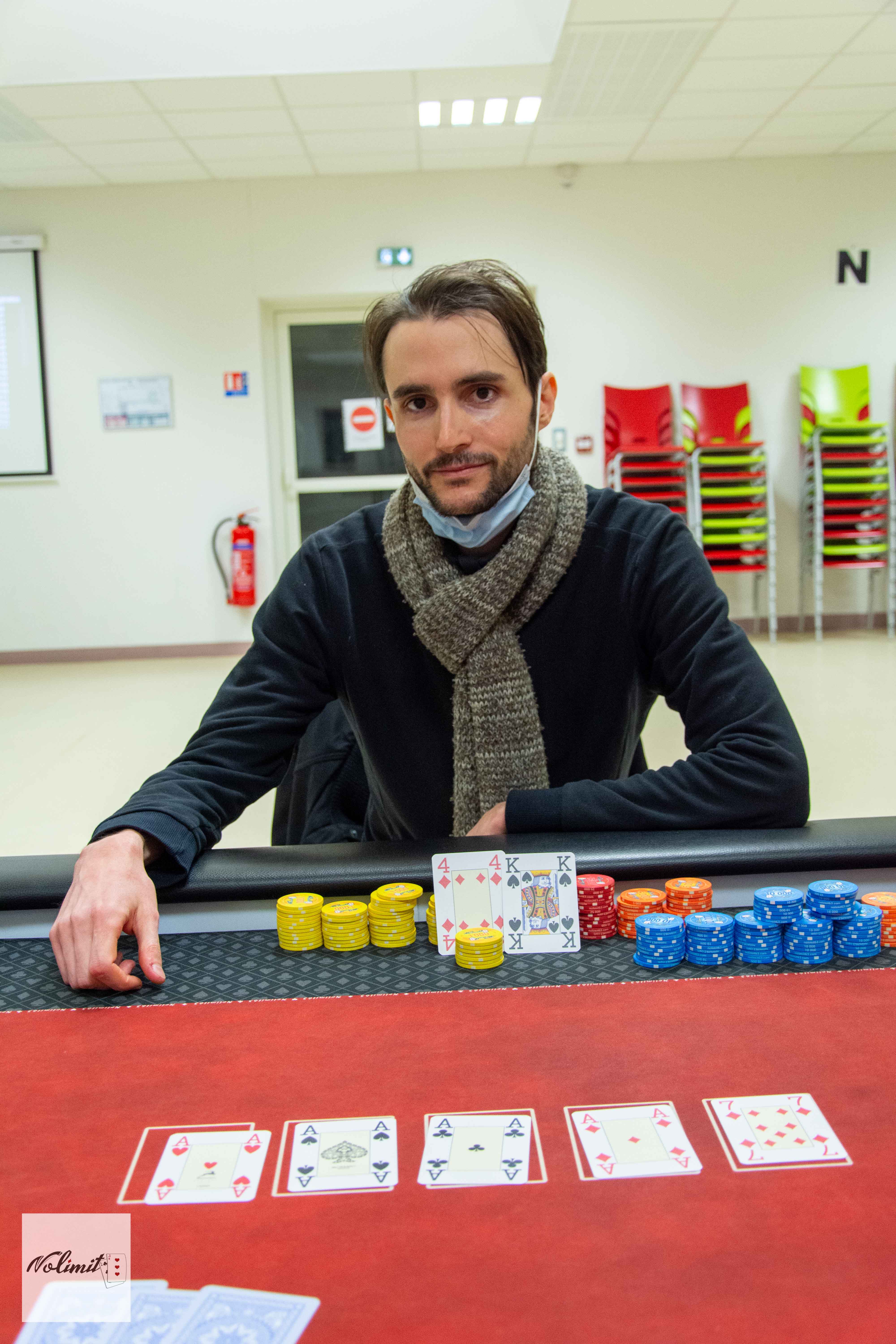 Malgré l’écart Bastien va offrir une belle résistance, doubler une première fois, mettre la pression, remonter un peu. Mais Benjamin reste largement devant en jeton et un full va lui permettre de quasiment achever son adversaire, ce qu’il fera quelques mains plus tard.