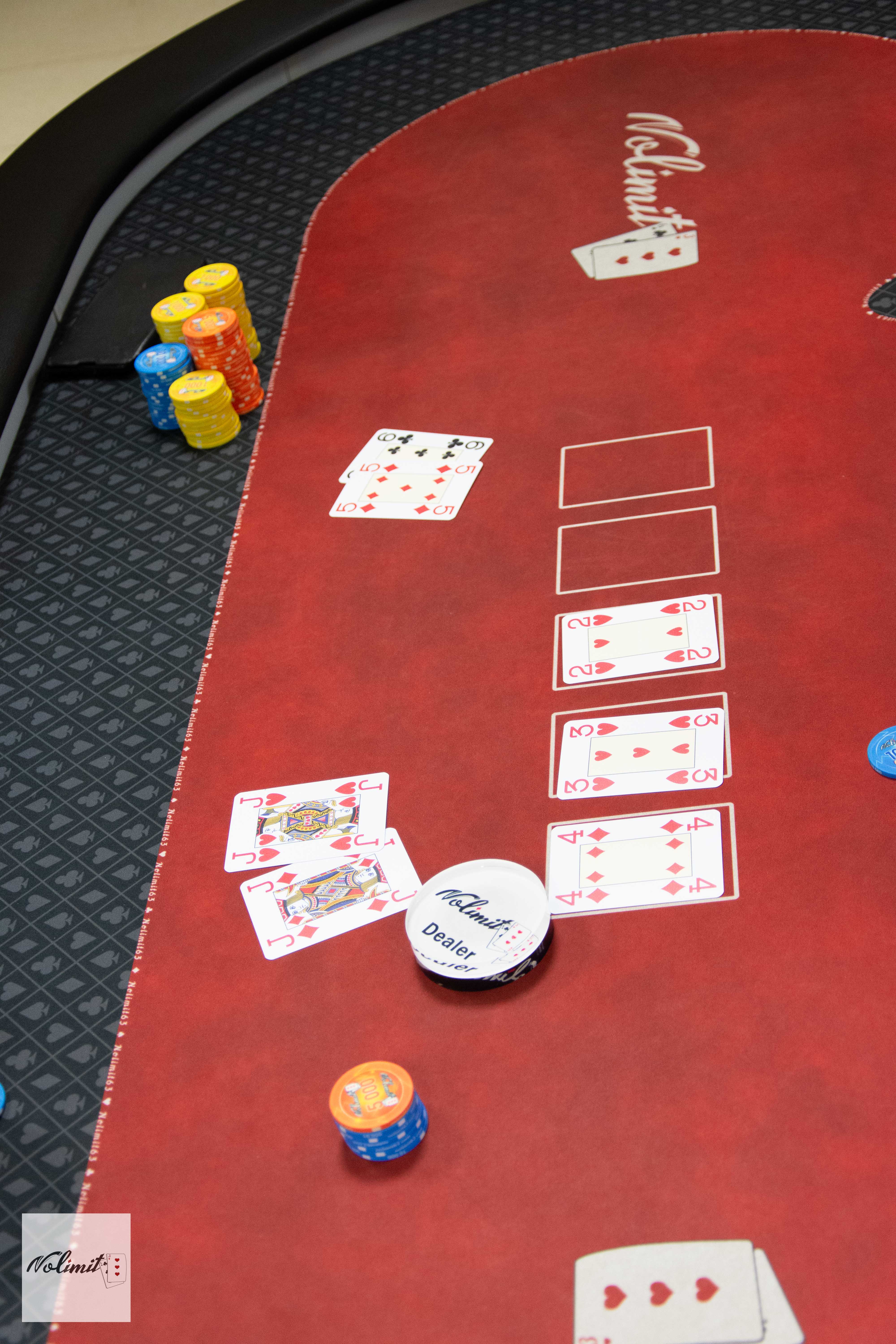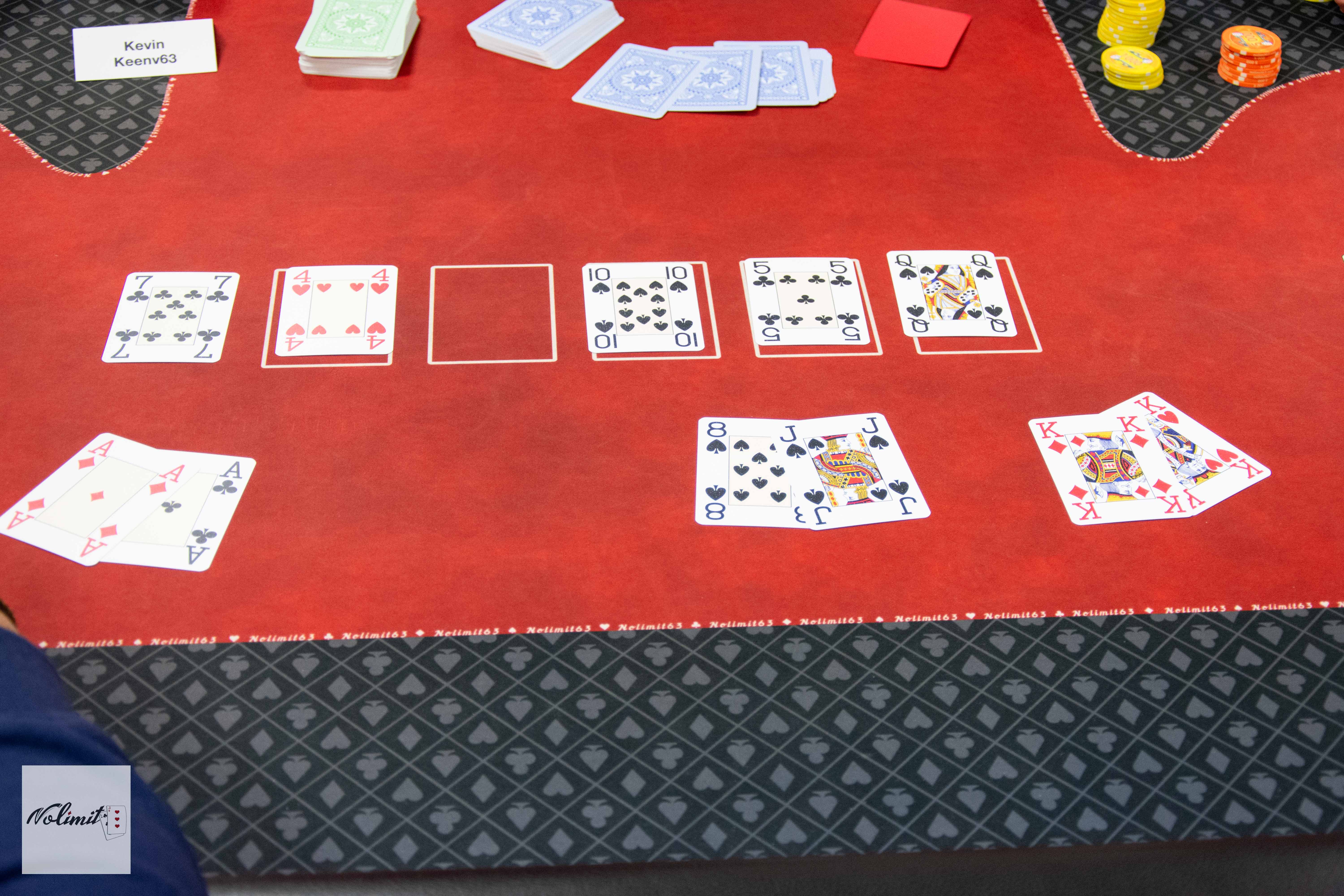 Quelques minutes plus tard Kevinho open au cot off, call par Ludo en SB et Simon en BB.